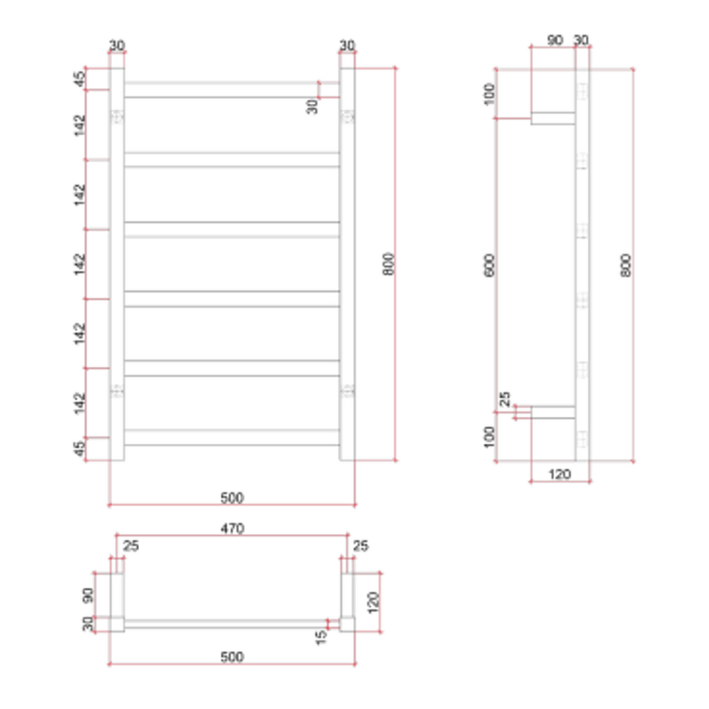 Thermorail Straight/Square - 500x800x120mm 81Watts 6 Bars