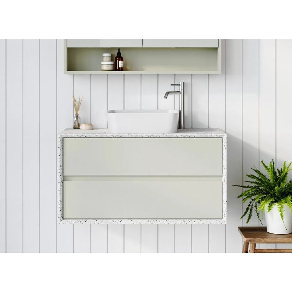 TIMBERLINE EMBRACE VANITY 900MM CENTRE BOWL SILKSURFACE SURROUND WG AC TOP WALL HUNG