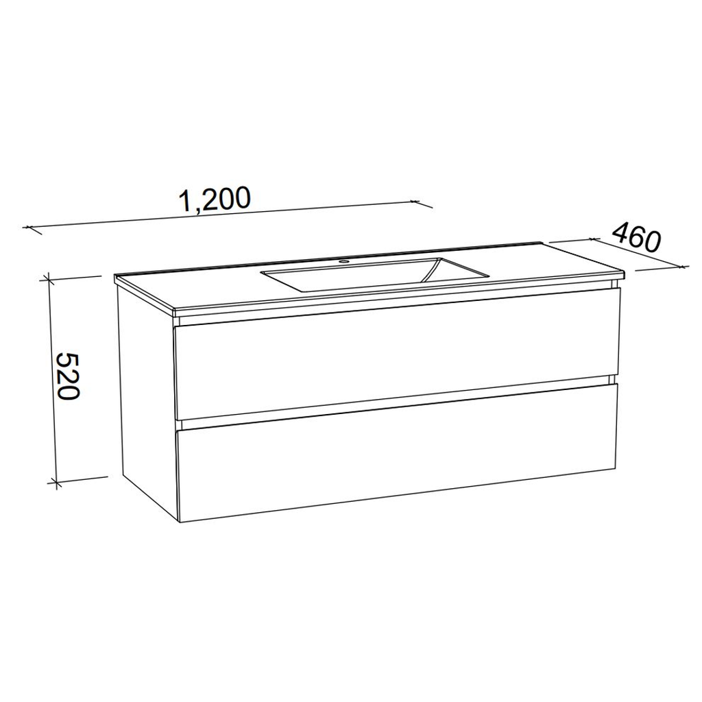 Timberline Nevada Plus Wall Hung Vanity 1200mm Centre Bowl Stadium Top