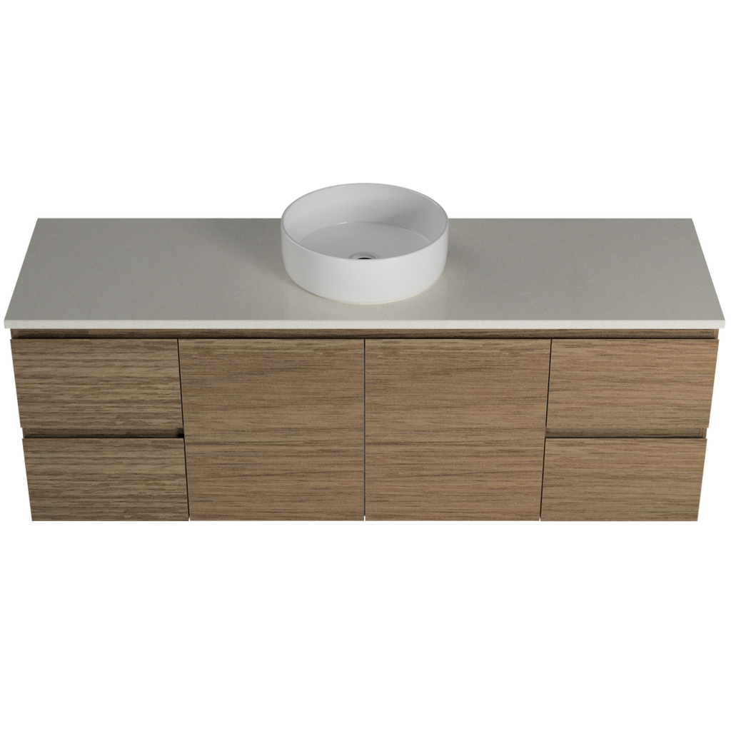 Timberline Nevada Vanity 1500mm Left Wg Basin Silksurface Ac Top Wall Hung
