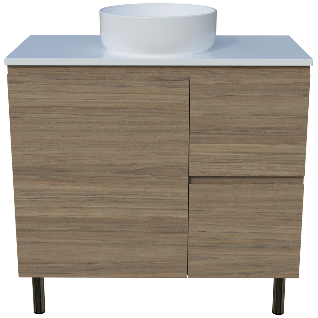 Timberline Nevada Vanity 900mm Left Wg Basin Silksurface Ac Top On Legs