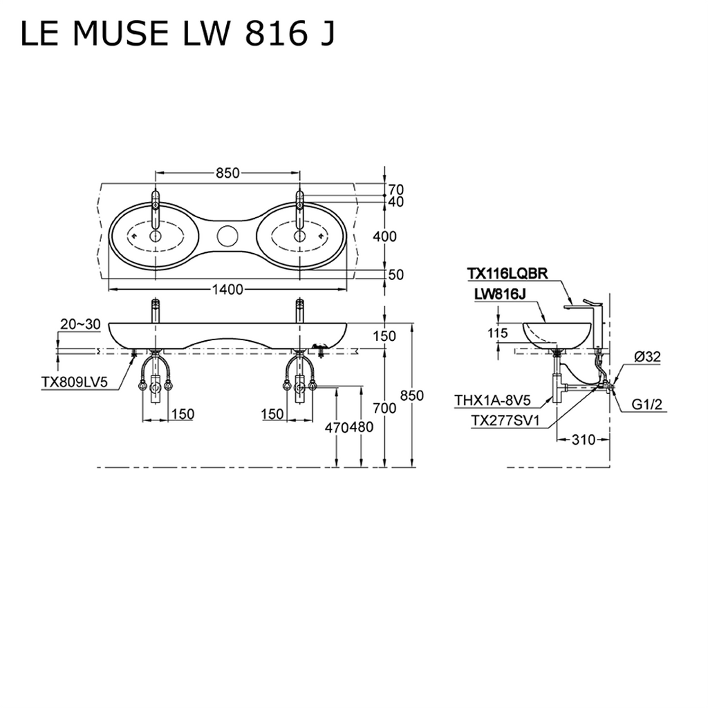 TOTO Le Muse Twin Vessel Lavatory LW816J#W
