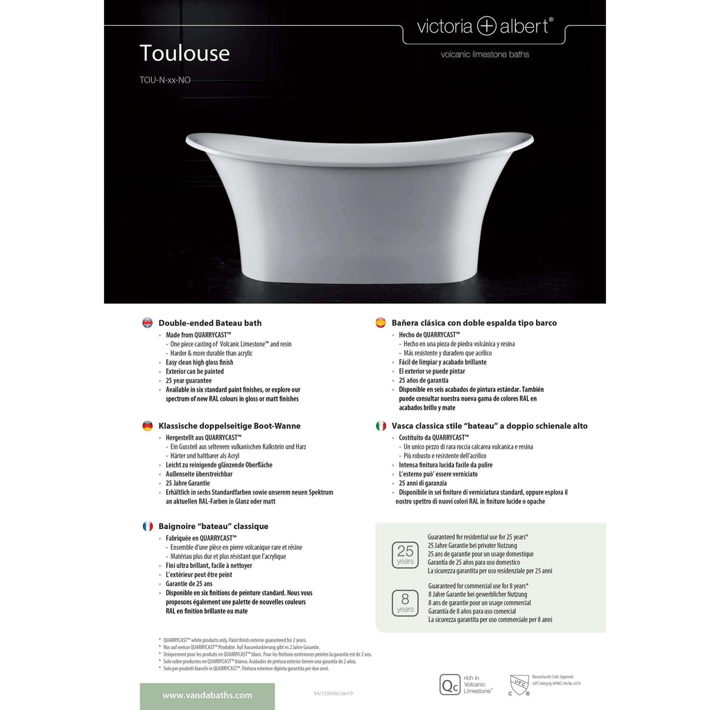 V+A Toulouse Freestanding Bateau Bath No Overflow Quarrycast White 1800mm